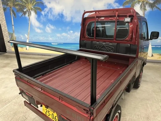 そんな軽トラをさらに便利に、そしてスタイリッシュに変えてくれるカスタムパーツが、兵庫県の但東自動車によって開発された「トラレール」だ。よくある簡素な荷台フレームとは異なり、軽量なアルミ素材を使い、取り付けも荷台に穴などを開けることなく簡単に装着が可能。デザイン性と機能性を兼ね備えたアイテムとして注目を集めている。