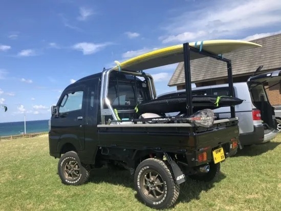但東自動車はトラレールのほかに「SAMURAI PICK UP」ブランドも展開している。これは、リフトアップやアルミホイール、エアロパーツやバンパーを装着することで軽トラの印象をガラリと変えるカスタムブランドだ。